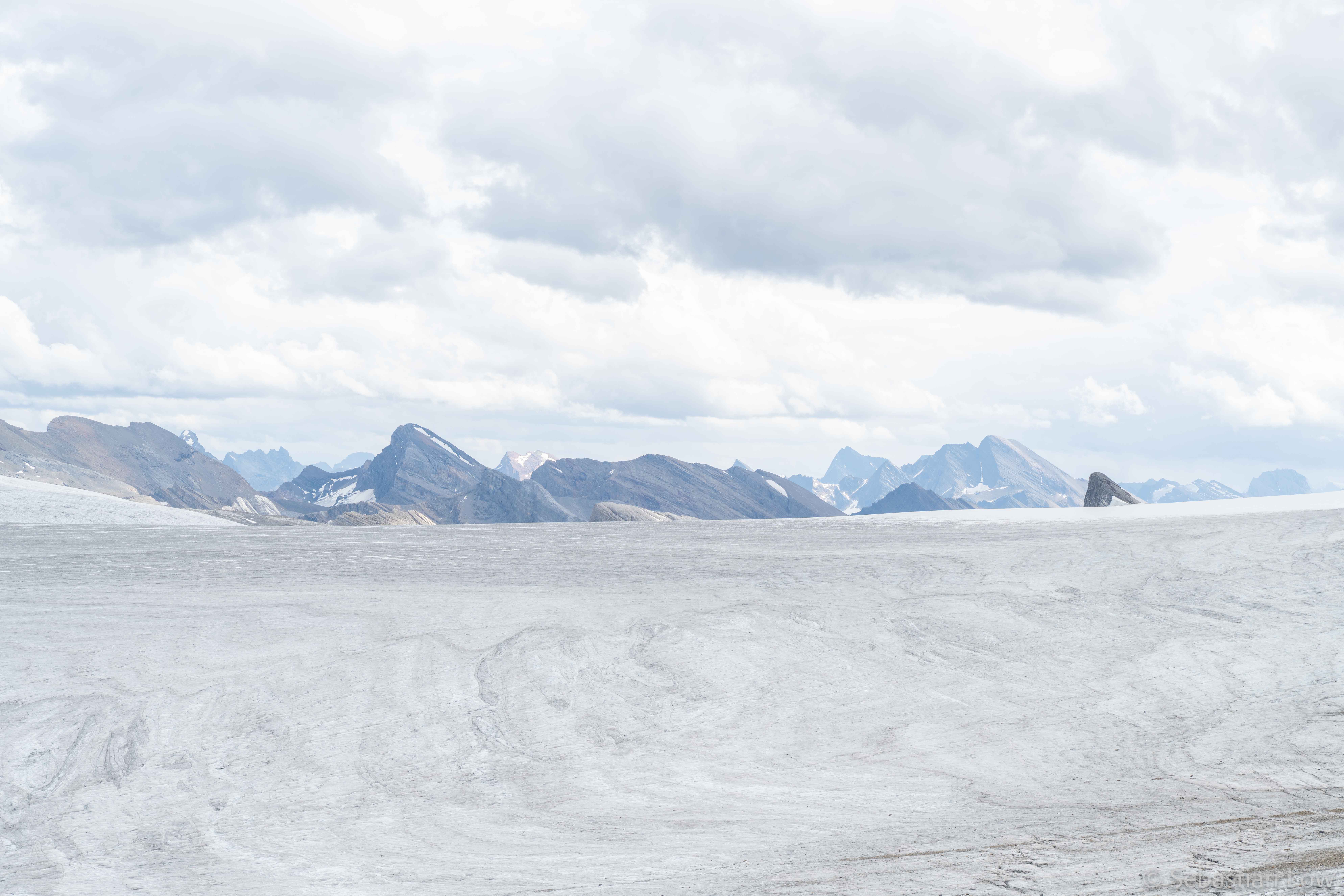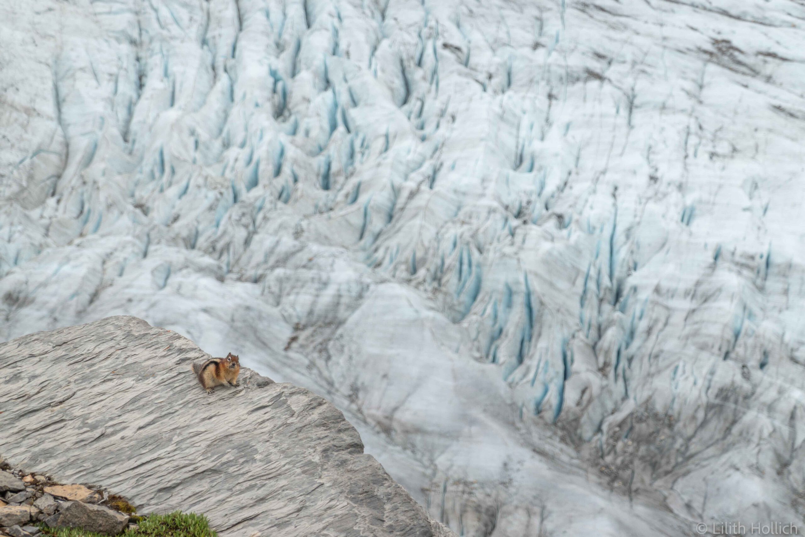 We scrambled uphill for some time and walked through beautiful meadows. We saw lots of chipmunks and a few marmots. After around ten km we reached the final part and when we made it to the top of the ridge we stood in front of the huge and impressive Reef Icefield. I have never seen an Icefield that close (if at all?) and it seemed endless!