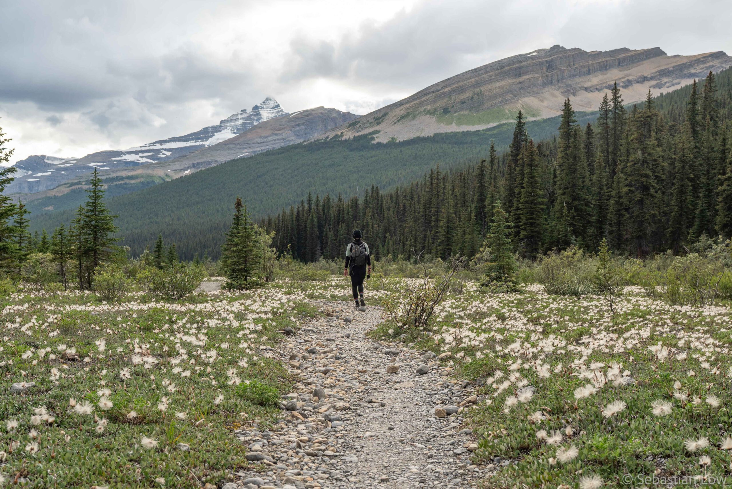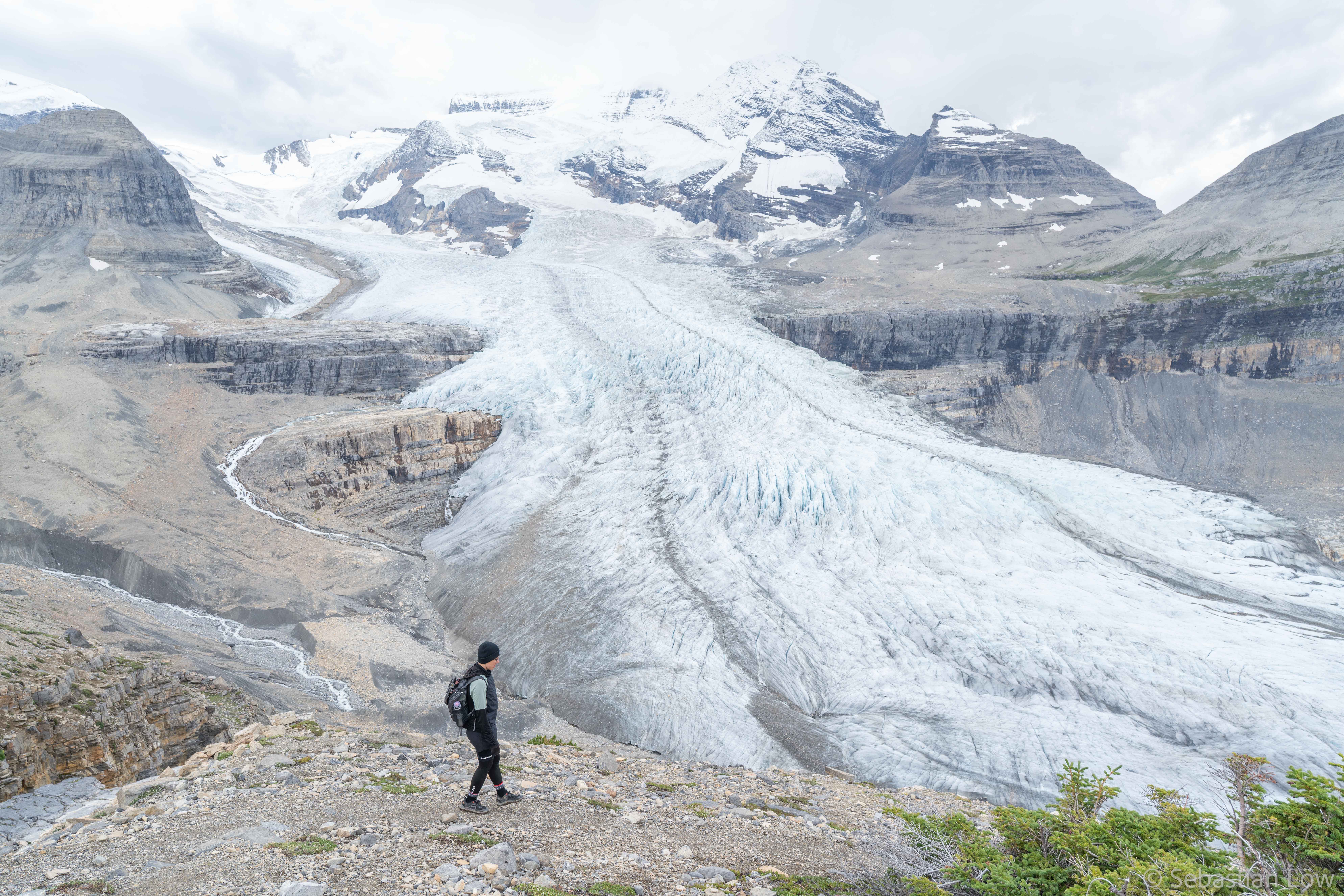 For the next day we had planned to hike the most famous day hike from here, the Snowbird Pass. After walking alongside the Robson River for a while, we suddenly had amazing views of the Robson Glacier.