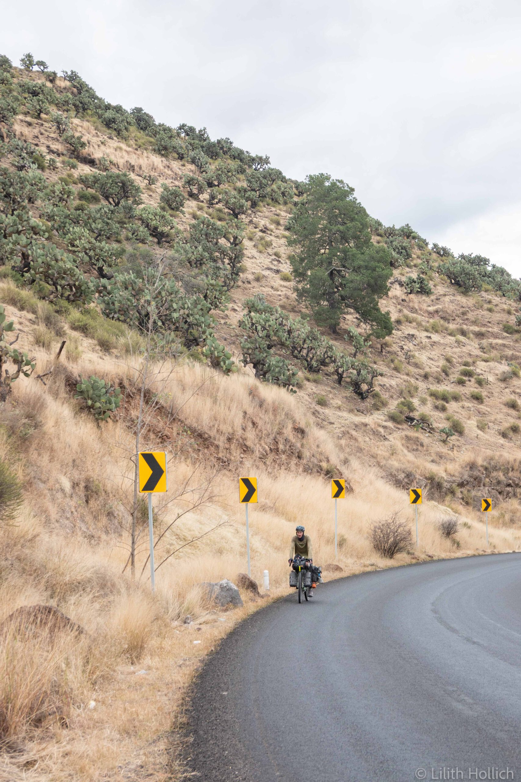 After having been spared for so many days, the bad weather caught up with us once again. As we began the climb out of a small village, the sky got darker and the wind picked up. Luckily for us, the rain waited for a while, but when we arrived at a fairly deserted settlement after a few hours, it was truly unpleasant. It was cold, it was windy and it was pouring with rain! Couldn’t it at least have been warm for the first proper rain after such a long time? It was quite late anyway and we looked for a wildcamping spot in the nearby forest. We continued cycling uphill the next morning, all the way up to 2847 metres – our highest point in Mexico at that point! Unfortunately, the descent was very bumpy and felt like it went on forever.
