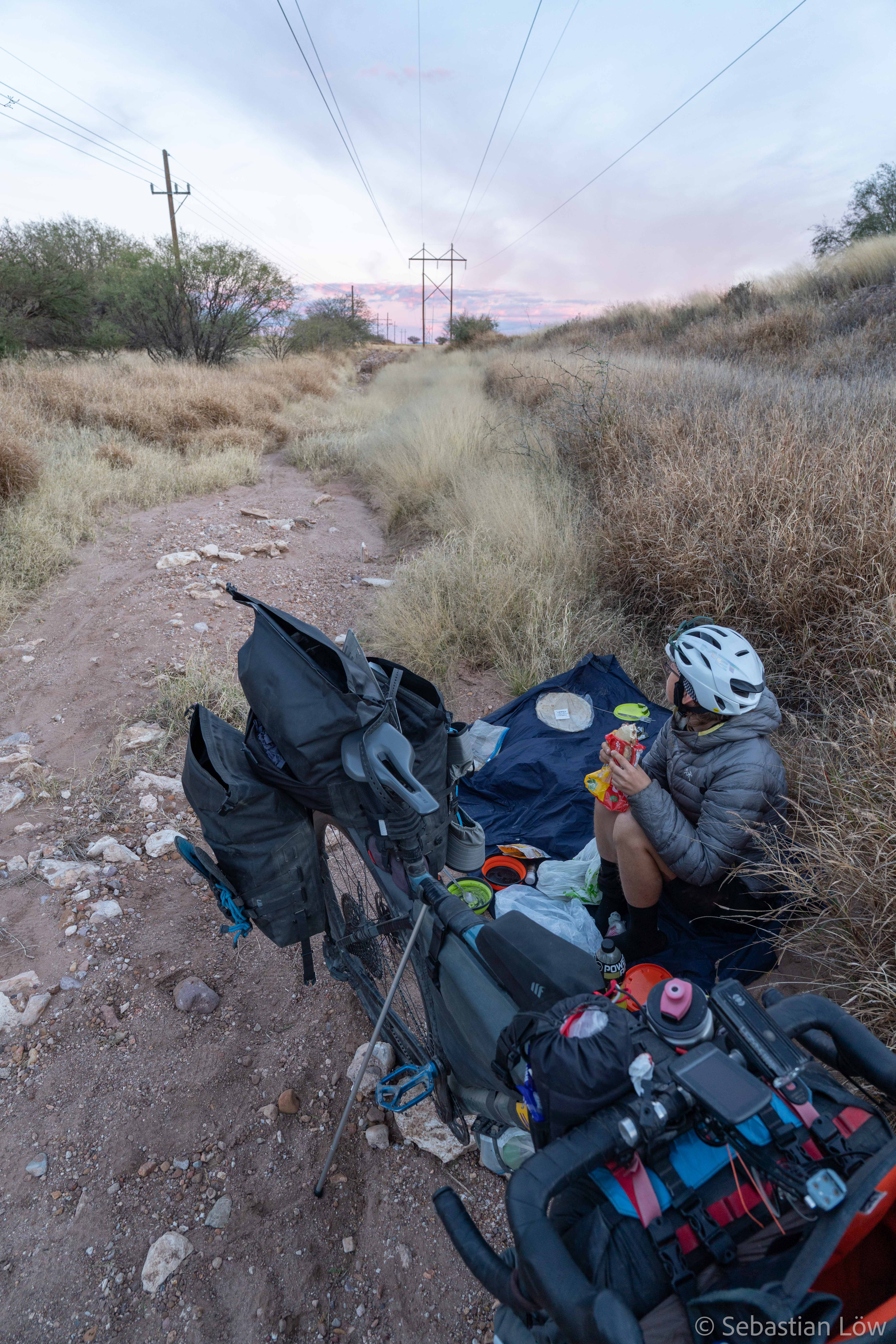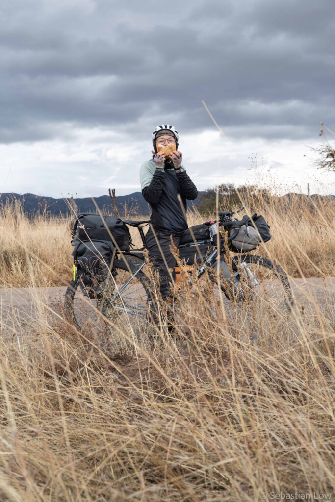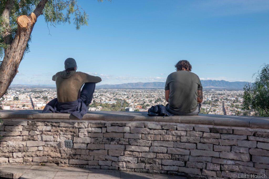 Between us and the city of Zacatecas was another mountain range, so uphill we went again. In Valparaíso, we went to a small fruit and vegetables shop. We started chatting with the owner and not only did he offer us some coffee and tea, but he also insisted on giving us half of our shopping for free! For some reason, everyone seemed very interested in us and our journey that day. As we cycled out of the town, somebody accompanied us on his scooter, and when we stopped at a gas station to take off our jackets, another four men started talking to us. It turned out that the man on the scooter cycles a lot himself, but “at this time of the year it was way too cold!”. It was 22 degrees Celsius in the shade.
