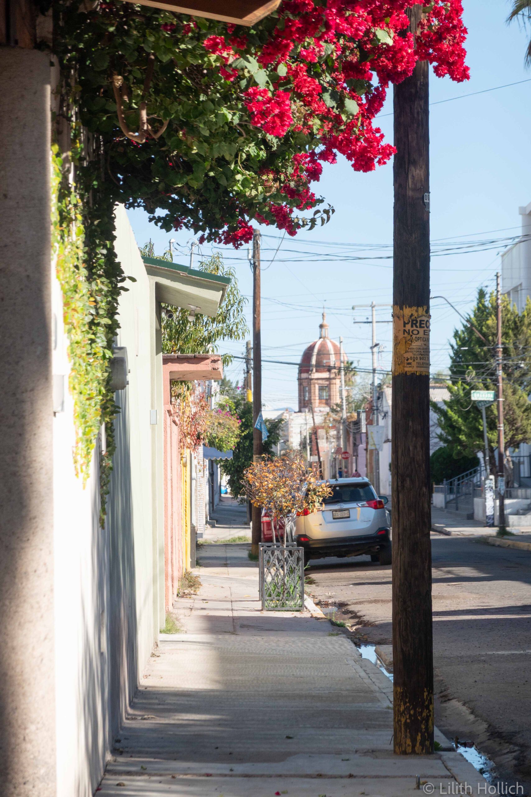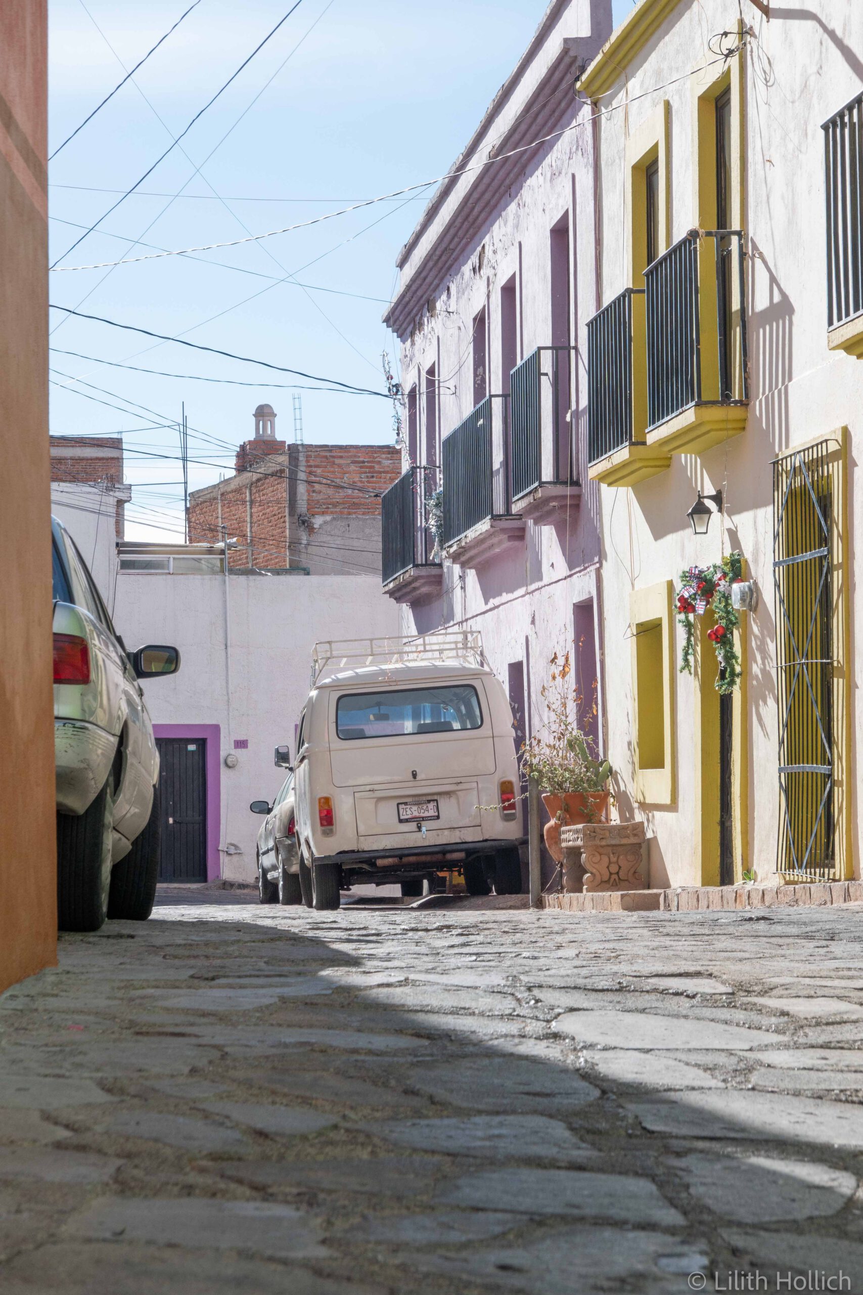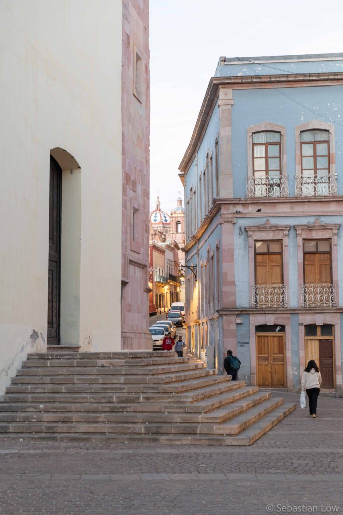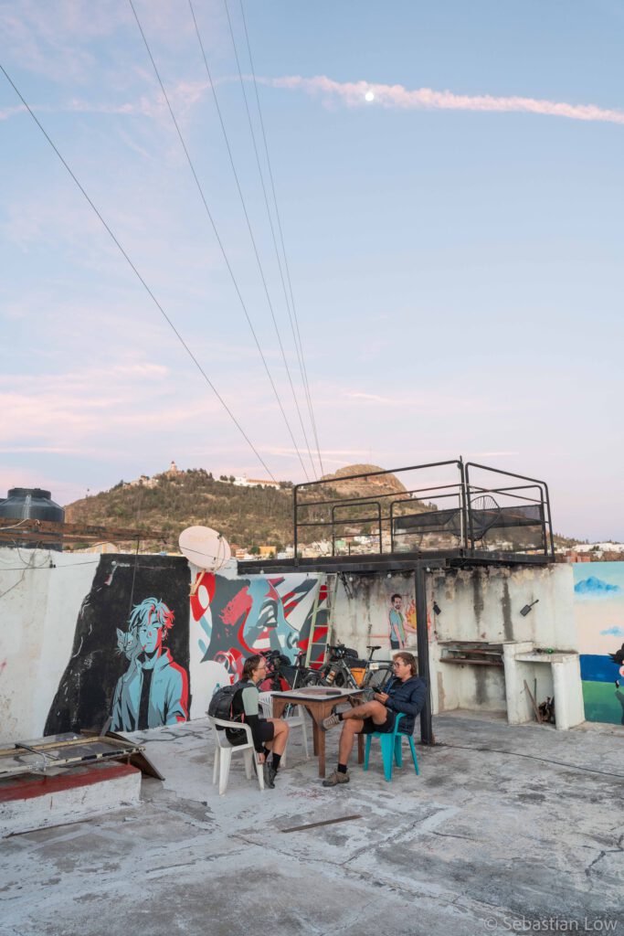 The following morning was cold, but beautiful. The morning sun rose slowly behind the stunning rock formations, and we looked around in awe as we cycled. At some point we reached paved roads again and the descent into Jerez was a pleasant one, for a change. This town is one of Mexicos “Pueblos Mágicos”, towns in Mexico that have been nominated by the government as particularly worth visiting. Again, we were approached by several people asking lots of questions about us and our bikes. By the way, Sebi’s Spanish is getting better and better – at least I can let him handle all the small talk on his own now! The last few kilometres towards and through Zacatecas were particularly exhausting. There were lots of lanes, even more confusing exits, and even a small tunnel that we had to go through. Our Warmshowers accommodation was right in the centre. Up on the roof of the house was a small room, a bathroom, lots of space and views over the entire city. So cool – and we were allowed to stay for as long as we wanted. Downstairs was a restaurant owned by our host’s son, so obviously we couldn’t be bothered to cook ourselves that evening.
