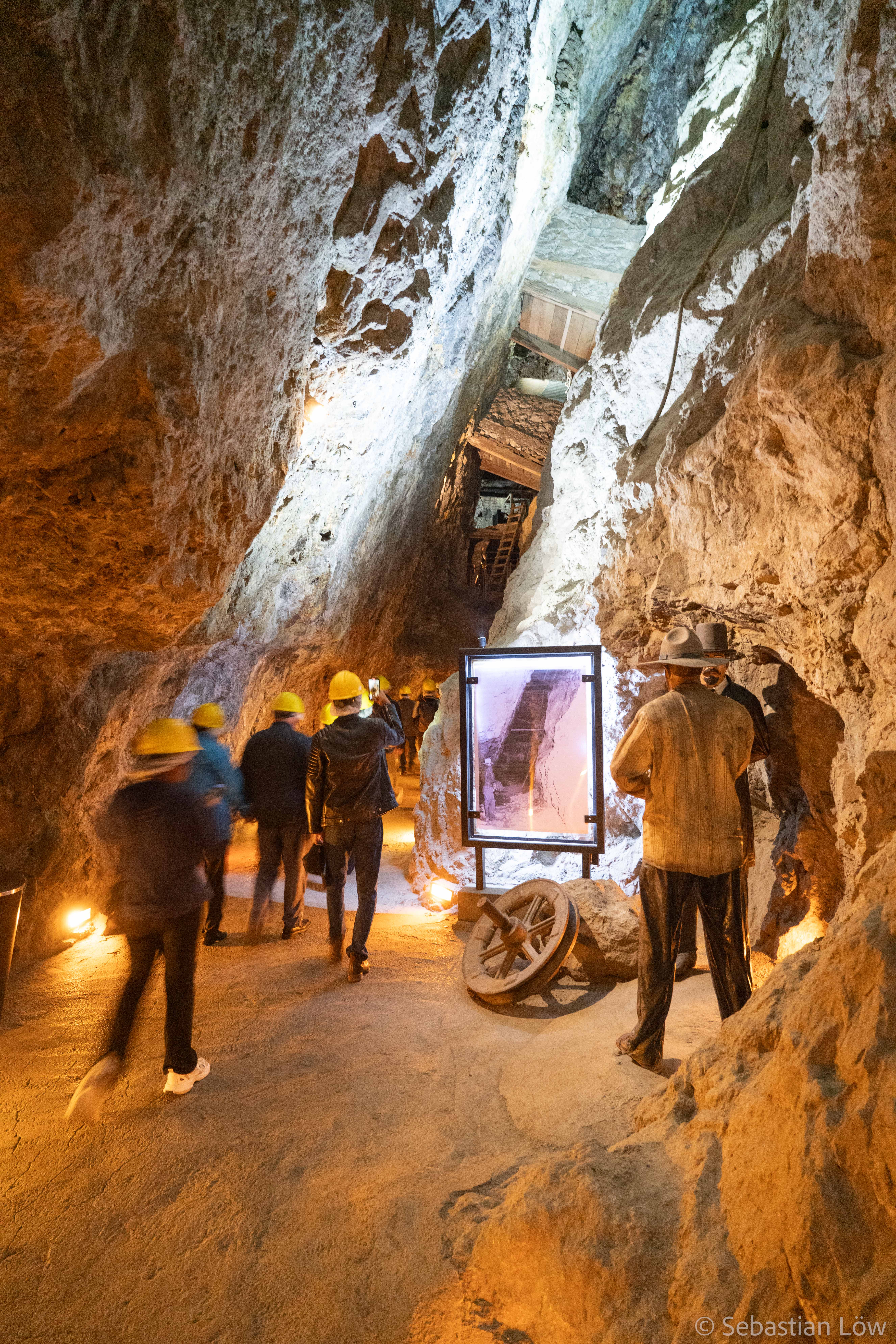 Zacatecas took us completely by surprise. When we’re cycling, we have so little time to plan anything ahead and usually we just manage to plan our route for the next few days. As a result, we often get to cities without any plans or expectations – and in Mexico, every city we’ve visited so far has been a pleasant surprise! One day was blocked for bike maintenance and working on a blog post, the other one for sightseeing. Kris arrived a day after us and stayed with the same host as we did. Together we explored the city, starting at the museum “Mina El Edén”. In contrary to the mining museum in Durango, this one is located in the actual former mine – and you get to enter it by train! A very small one to be fair. Gold, silver, iron, bronze, lead and zinc used to be mined here. There’s also a small mineral and rock museum underground, with really cool fossils and fluorescent rocks. Apparently there’s even a nightclub, which we didn’t visit though. Afterwards, we took the cable car up to Cerro de la Bufa. There was plenty to see and do there. We mainly enjoyed the view and visited the small museum “Toma de Zacatecas“, which is dedicated to the Mexican Revolution and the associated battle in Zacatecas in 1914.