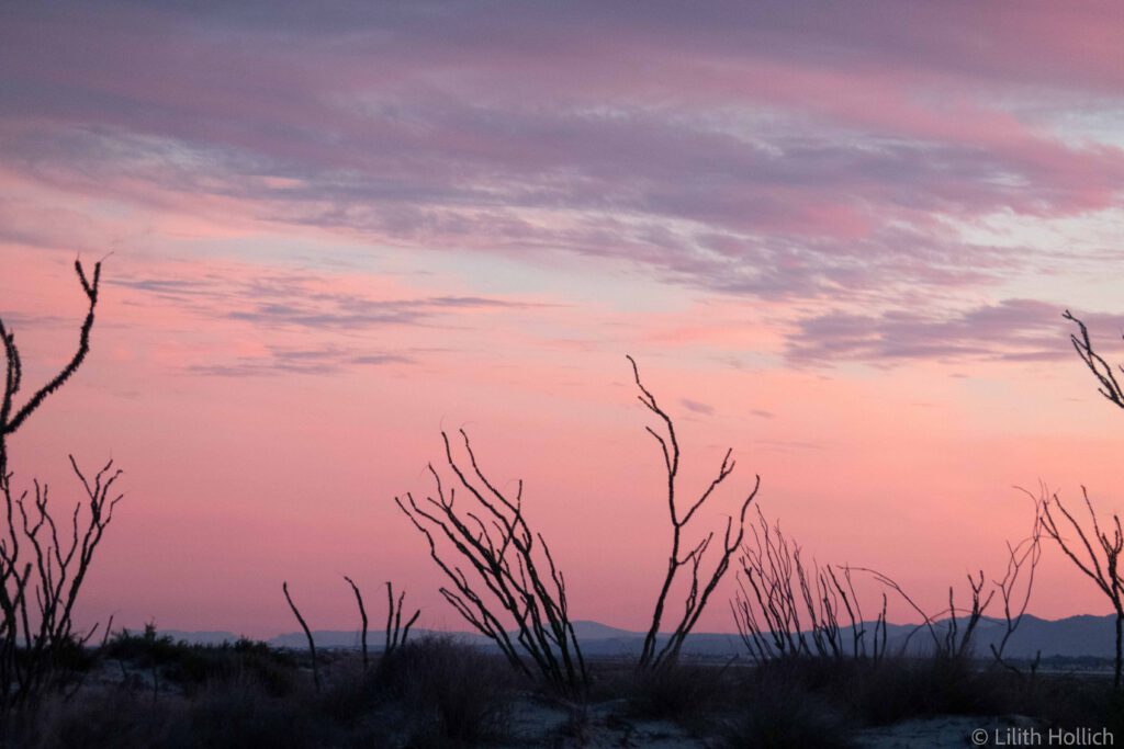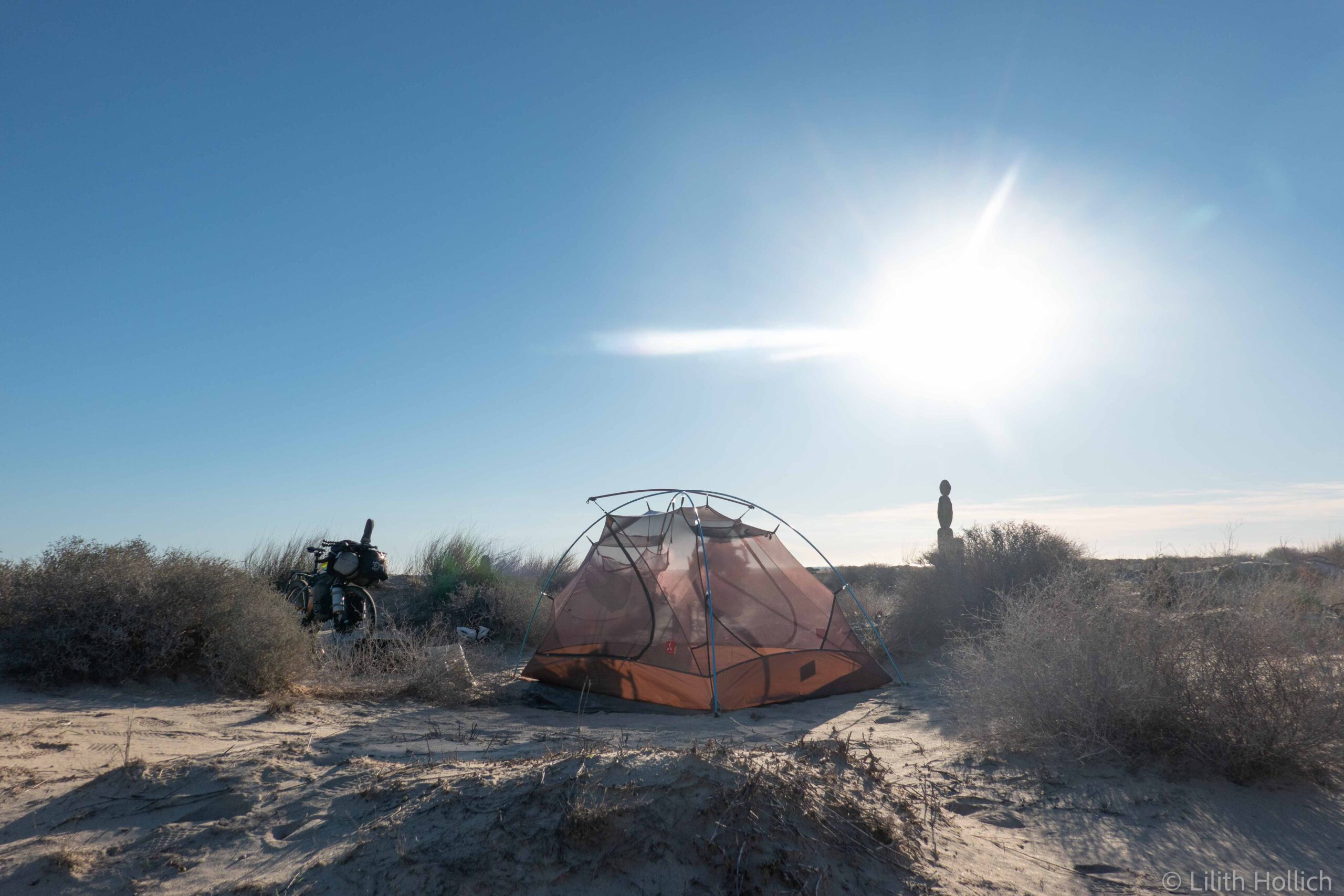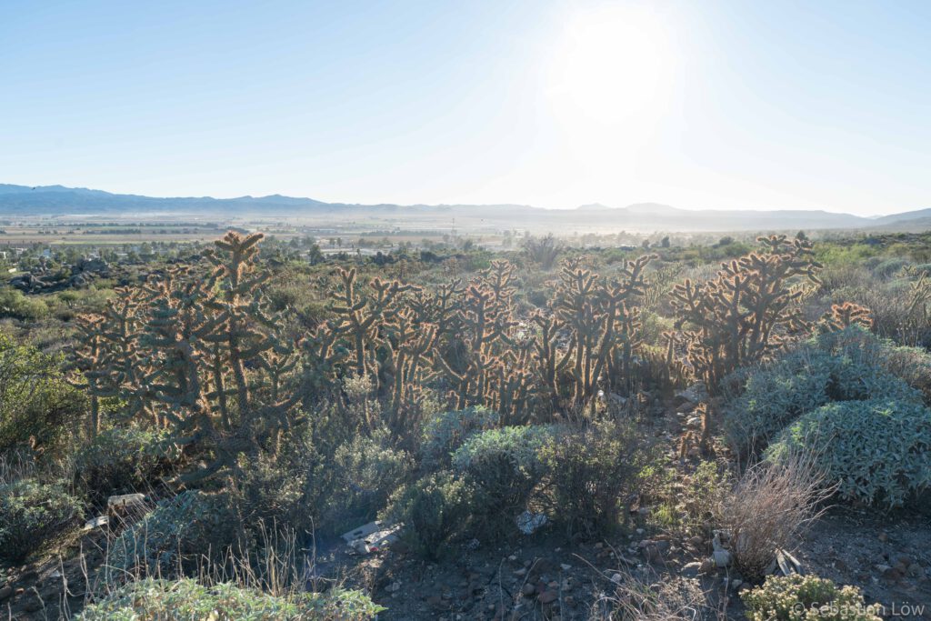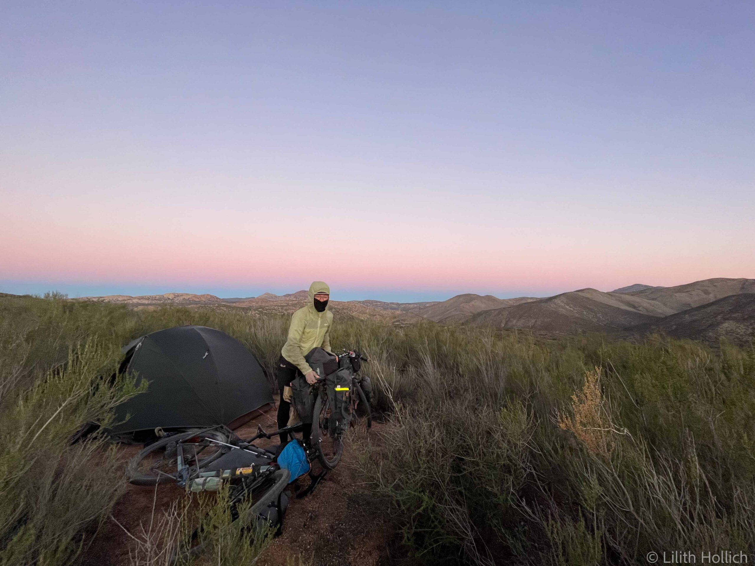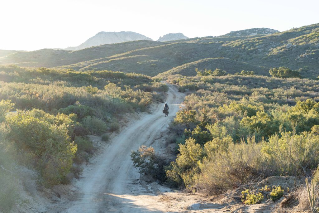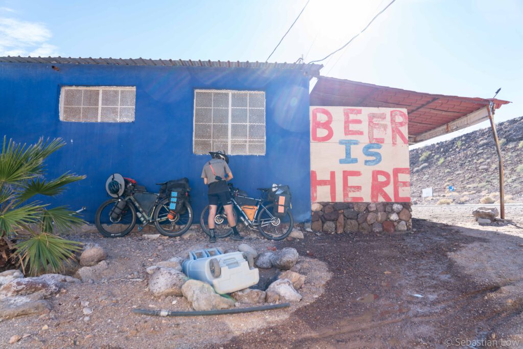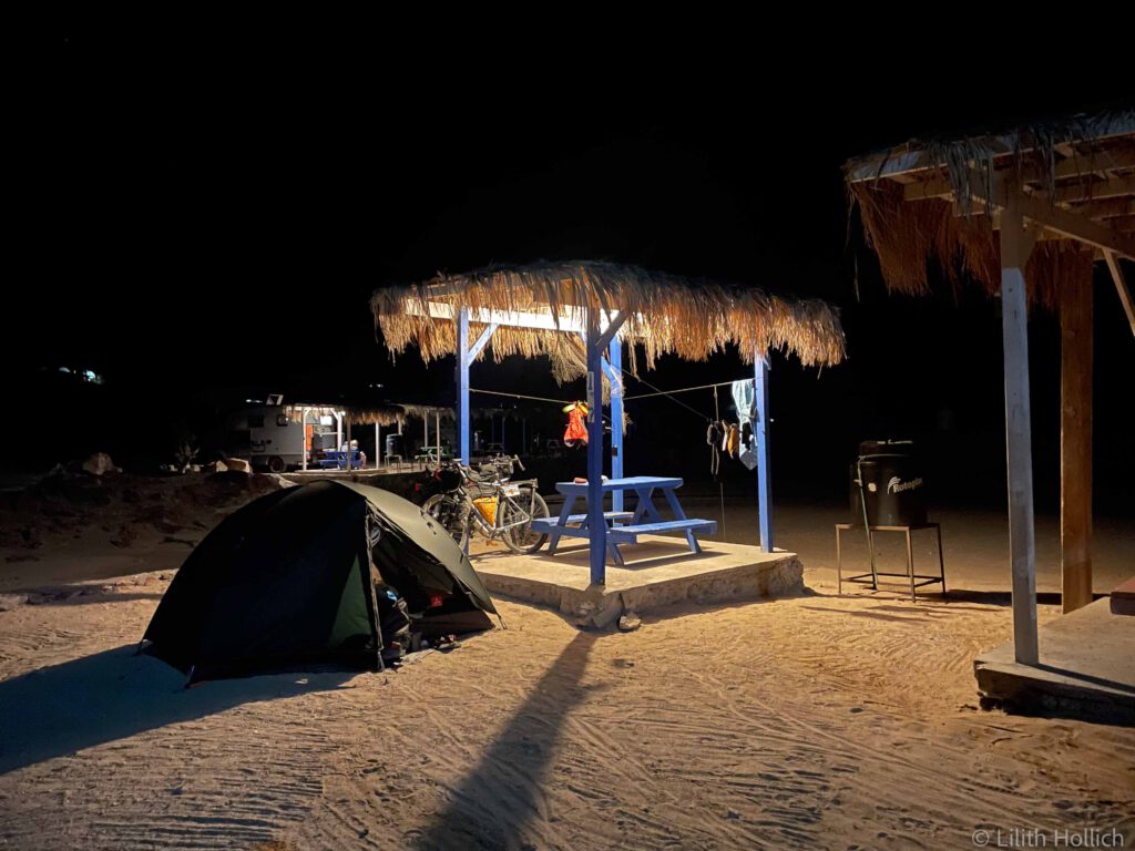 Baja California is beautiful and, despite the few roads, in parts very remote. Often, phone reception is limited to bigger towns only and at times we will have to carry water for several days. There is a very popular bikepacking route that zig zags across Baja California from North to South, called Baja Divide. Most of it is too bumpy or sandy for us with our relatively thin tires. Parts of it are both beautiful and doable for us though and we tried to incorporate as much of it as possible. After following the main road out of the city centre of Tecate, we turned onto a dirt road, following the Divide route for now. The road was sandy, but manageable and the landscape looked cool! We cycled for a bit and pitched our tent in the bushes, just when the sun set. No car was coming by the whole night.