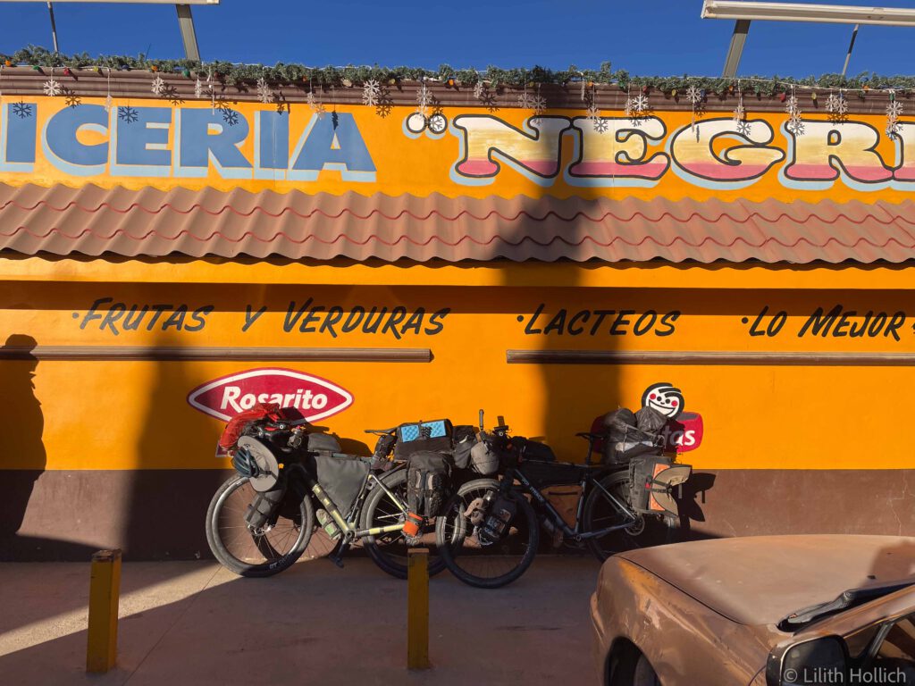 Puertecitos is a small village on the coast with natural hot springs nestled in the rocks. We camped at the adjacent camp site and spent some time in the hot pools. We met a group of German overlanders at the camp site and were generously supplied with water and wifi. The next day we stopped at a little kiosk-like shop for snacks. Just when I was about to tell Sebi that now might be the time we have to start looking very carefully at the best before date (because stuff tends to be in the small stores for way too long), we saw the first mouldy bread on the shelf. I remembered that we had the same “issue” back in Chile in remote areas as well.