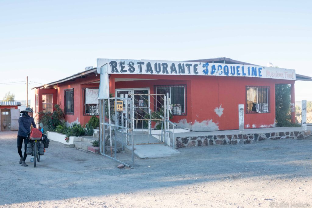 Manu and Thiago would be crossing into Mexico soon and we arranged to meet in San Felipe. That meant that our next few days were predetermined, but after Ojos Negros the road was paved and the distance we needed to cover wasn’t too much. We had two beautiful days of cycling with little traffic, lots of different cacti and good weather. We camped at a small restaurant, the owner let us stay for free and we had dinner at her restaurant. She took lots of pictures and made sure we followed her on Facebook! We arrived in San Felipe just a few minutes ahead of Manu and Thiago. Another Swiss couple they had met at the border in Mexicali joined us and we all spent the evening together.