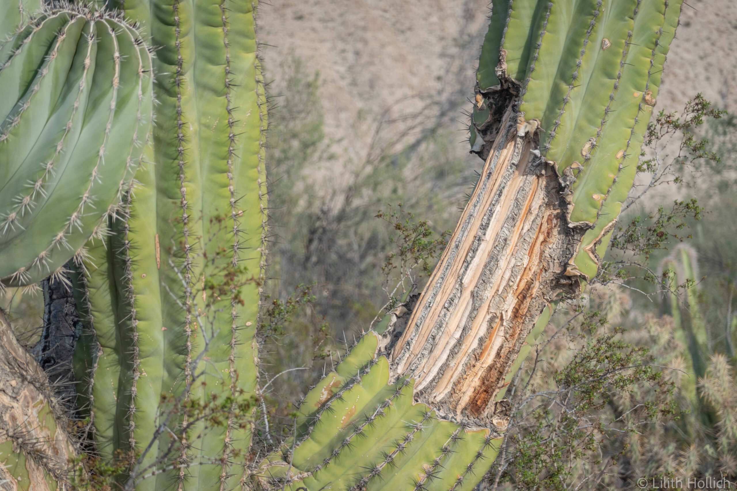 We passed the Valle de los Gigantes, a valley full with “cardón cacti”, the worlds tallest cacti. Apparently they can only be found in a handful of regions in Mexico and they were indeed quite impressive! They can grow up to 18 meters in height and weigh up to 25 tons. The amount of gun holes from people shooting at the cacti were impressive as well, unfortunately…