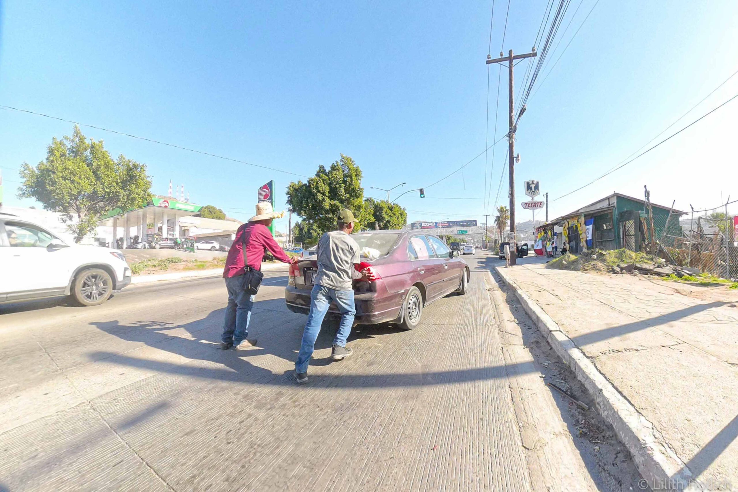 The next day, we arrived in Tecate and had one last lunch break in the US, before we rolled to the border. An officer waived us over to the pedestrian lane and we walked right through the gates. We missed the immigration office at first and had to turn around – we nearly accidentally walked straight into Mexico and nobody would have stopped us! After filling out some paperwork we had to walk to a building across the street and pay for the visa. We used the waiting time to withdraw our first Mexican Pesos as there was an ATM in the same room. Unfortunately, that ATM chose to withdraw money from the account without giving us the cash! There was nothing we could do on the spot, so that was a problem to be solved later on. After paying 861 MXN per person (~40€), we were issued a tourist visa for 180 days, got a stamp in our passport and before we knew it, we stood on the other side of the border, surrounded by beautiful Mexican chaos.