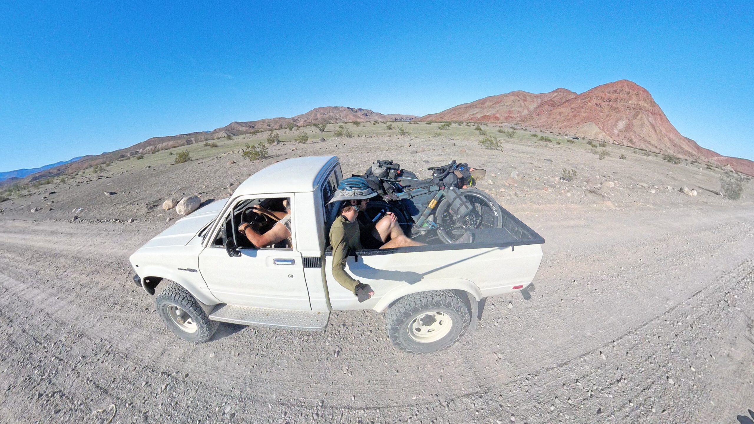 Upon leaving, for the first time ever we forgot something and only noticed it after some 20 km of tedious uphill… After snorkeling, we had put the action cam somewhere to dry and didn’t see it when leaving. out of sight, out of mind! Without any phone reception, we had no other choice than turning around to pick it up, but Mark was kind enough to give us a lift back to where we turned around. Another ride on the back of a pickup truck, for Sebi at least!