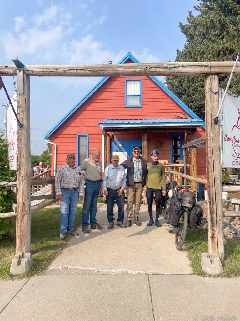 We left Pincher Creek and after a few kilometers somebody was waiting for us at the side of the road. She had seen us on her way back home and quickly grabbed some of her home made peanut butter cookies and a whole jar of cold water. She had been bike touring herself years ago and knew exactly what we needed, so sweet!