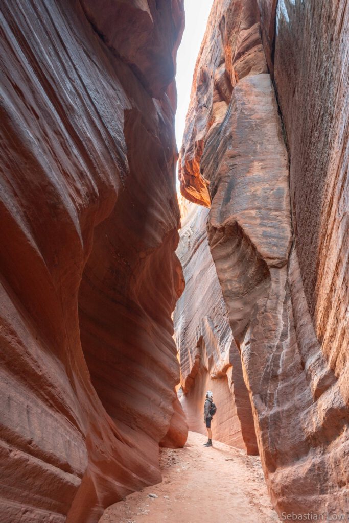 We left the city of Page and cycled over the Glen Canyon Dam. The weather continued to be nice and warm and our rain gear sank deeper and deeper into our bags. Our next stop: Buckskin Gulch, a beautiful slot canyon with red walls. In contrary to the Antilope Canyon, which is bigger and more popular, but at the same time very expensive, this one was open to anyone for just a few dollars. We pitched our tent at the adjacent (free!) campsite to make sure we got a spot and went back to the trailhead. We were a bit too late for seeing the colors really shine in daylight, but it was still impressive! And our first experience in a canyon like this. We wandered around for some time and made it back before it got fully dark.