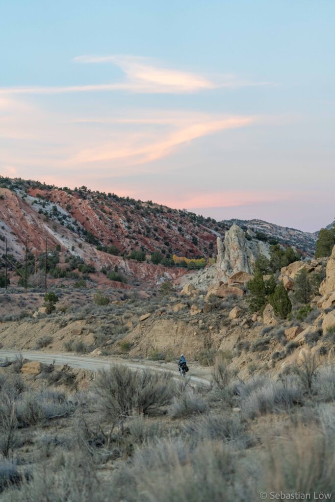 We once again found ourselves on our own in the middle of a beautiful landscape. We were cycling through the “Grand Staircase-Escalante National Monument”, with many different rock layers in various colors, canyons and several national parks.