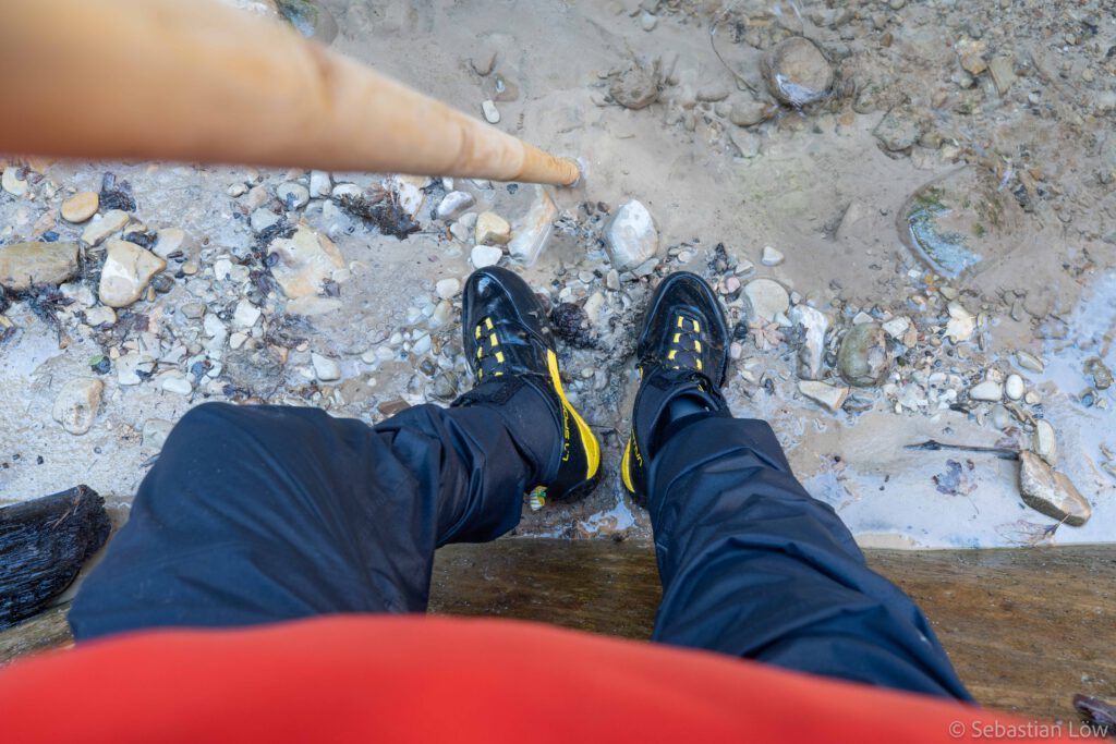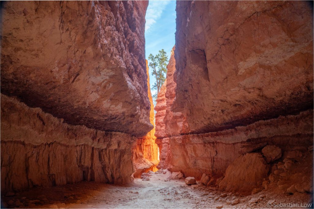 As the water was already quite cold when we were there, we decided to rent neoprene socks, water shoes and dry bibs. Unfortunately, we had to change from our camp spot to another one that day. We needed to leave so early in the morning that the other one wasn’t vacant yet and had to pack up everything as normal. We rented a locker for our bags and valuables, locked the bikes at the campsite and took the shuttle bus to the trail head. Fully equipped with our water shoes, dry bibs and long wooden stick, we entered the canyon. The water was everything from ankle deep to belly deep, sometimes it was possible to walk on sand next to the river. We hiked into the canyon for several hours, before we turned around to make it back in time. The canyon walls were so high! The water pressed against the legs, but with the dry bibs, everything stayed dry which felt a little bit like magic. We took lots of pictures and to this day I am still impressed that none of us had dropped any electronics into the water. A few crazy people hiked without dry bibs or neoprene gear, only with sandals or crocs.. Sebi and I got cold feet just watching it! After seven hours, we were back at the trail head, tired and happy. We returned the rental gear and spent the rest of the evening with Kris and his friend at their campsite.