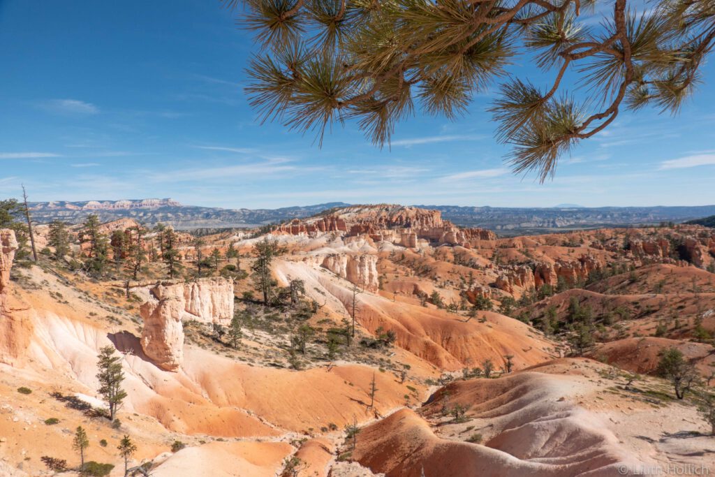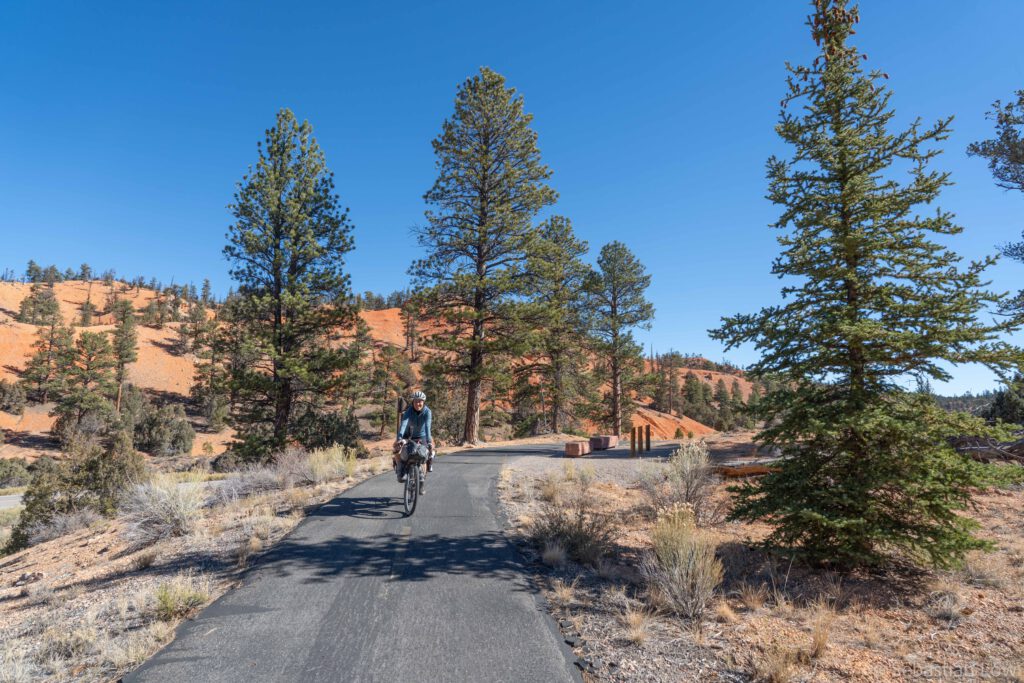 The next morning, we returned to the viewpoint, parked our bikes and went for a hike in the canyon. We combined parts of the Navajo Loop and the Queens Garden Hike and the scenery changed so often! From steep, red-orange canyons to open forest and white rocks. Hiking down into the canyon inevitably meant having to hike back up at some point and we were happy once we made it back to the start. Sebi returned to the campsite and I cycled to a few more viewpoints along the Bryce Canyon road. When I got back to the campsite, our new Swiss friends were already there and we spent the rest of the evening at their campsite, engaged in beautiful conversations.