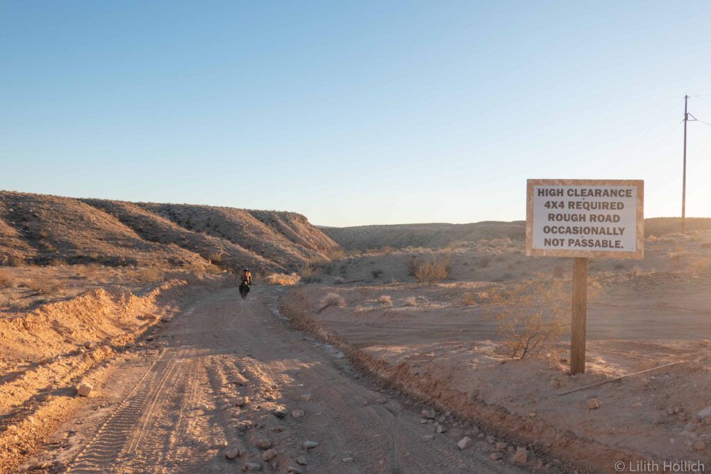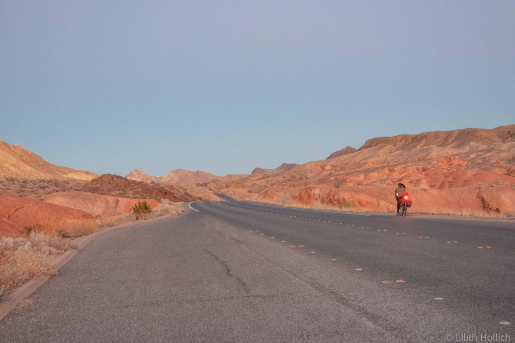 Three more days of cycling and we would be in Las Vegas. I really wanted to see the city, although I would never fly there to go there. Now it was basically on our way! We said good-bye to our lovely hosts and had a beautiful day of riding – uphill, downhill, Joshua trees – until we turned onto a dirt track in the afternoon. Road options were limited and that dirt track was the only alternative to the super busy, dangerous and maybe even prohibited Interstate highway. Unfortunately though, the track was incredibly sandy and we pushed at least 90% of the first 15 km. It got dark, it was a lot of uphill and we had no idea when the track would get better. We kept pushing until we reached the top of a plateau and felt like we had gotten through the worst part. It was well after 10 p.m. when we finally pitched our tent somewhere next to the track.
