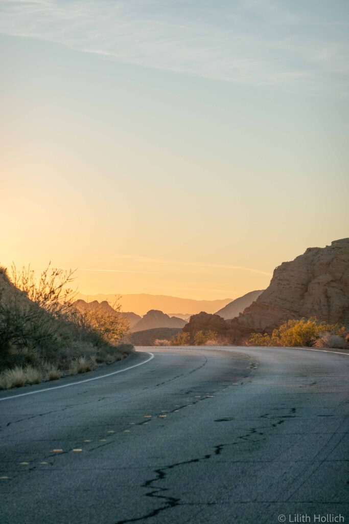 Thankfully, the next day the track got better faster than expected and we were back on smooth-rolling gravel and pavement. We saw more and more different cacti and found lots of stuff next to the road, a broken iPod classic and cassettes among other things. One last night of wild camping outside of Las Vegas, before we cycled into the city of superlatives. The weather was incredible and we waited until we found a place in the shade until we stopped for lunch. Las Vegas had way more cycling lanes than expected, but at the same time a lot of road works and the dreaded city cycling was nearly as exhausting as feared. At some point, a car slows down when approaching us and the driver waved enthusiastically at us. It took us a moment to recognize the person – it was Tristan, in a rental car! The Canadian cyclist we had last seen when we were all hiding from the thunderstorms at a visitor center. So funny. Obviously amused to be on the other side of things for the day, he asked us if we needed some water or snacks.