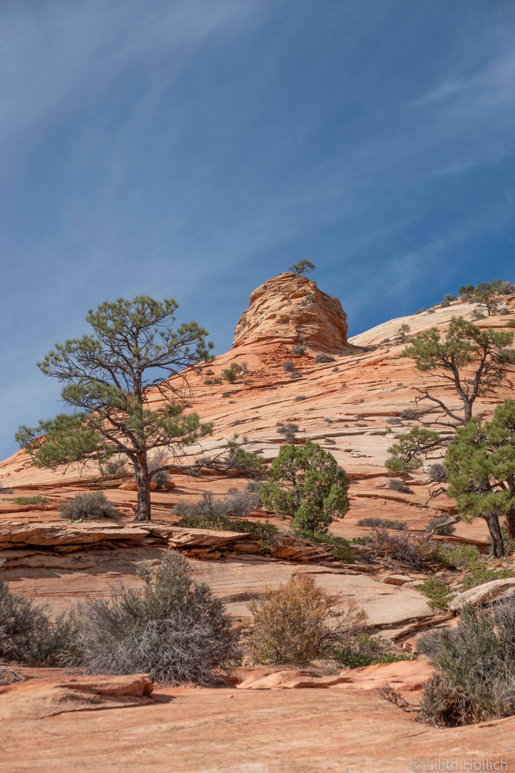 While saying good-bye to Manu and Thiago the next morning, they got approached by a couple from the US. They live part of the year in Alaska and the other part of the year in Utah. When they learned how we travel, they invited us to their place and we announced ourselves for a few days later. Funnily enough it was right next to the route we had planned! Over the following two days, we cycled towards Zion national park. Right before the descent into the park is a tunnel, where cyclists are strictly forbidden. As there isn’t an official shuttle service, we had to find somebody willing to give us a ride through. Fortunately, we didn’t have to wait long until a friendly couple told us to hop on the back of their pickup truck. Yes, the bikes and us went on the bed of the truck! As you know, that wasn’t the first time somebody transported us like that, but it doesn’t necessarily feel safer the more often you need to do it… They dropped us off right after the tunnel and we enjoyed a beautiful downhill into Zion. We were reunited with Kris, one of the cyclists that we had met in Yellowstone. He was staying at the same campground for a few days with a friend of his and generously offered to share his spot. As the campground was fully booked and we were only able to get a spot for one of the two nights, we gratefully accepted his offer.