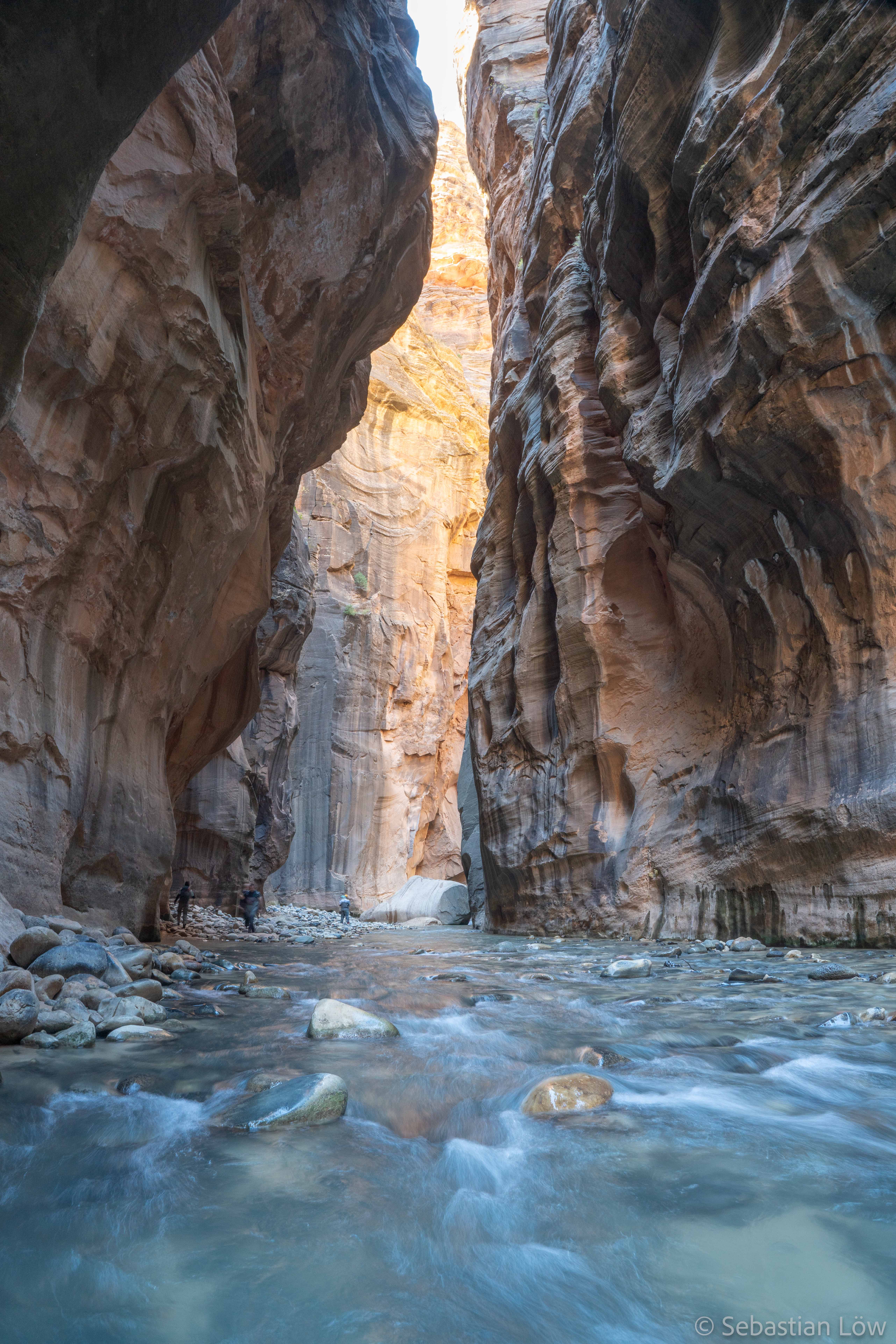 This is by far one of the coolest things we have done on this trip. Located in the Zion National Park are “the Narrows”, the narrowest section of the Zion Canyon. The walls are several hundred meters high, but the canyon less than ten meters at its narrowest sections. It’s possible to hike into the canyon, and the Virgin River that flows through it, is the trail. The water depth varies and can be as deep as chest height. When the flow is too strong, the trail gets closed.
