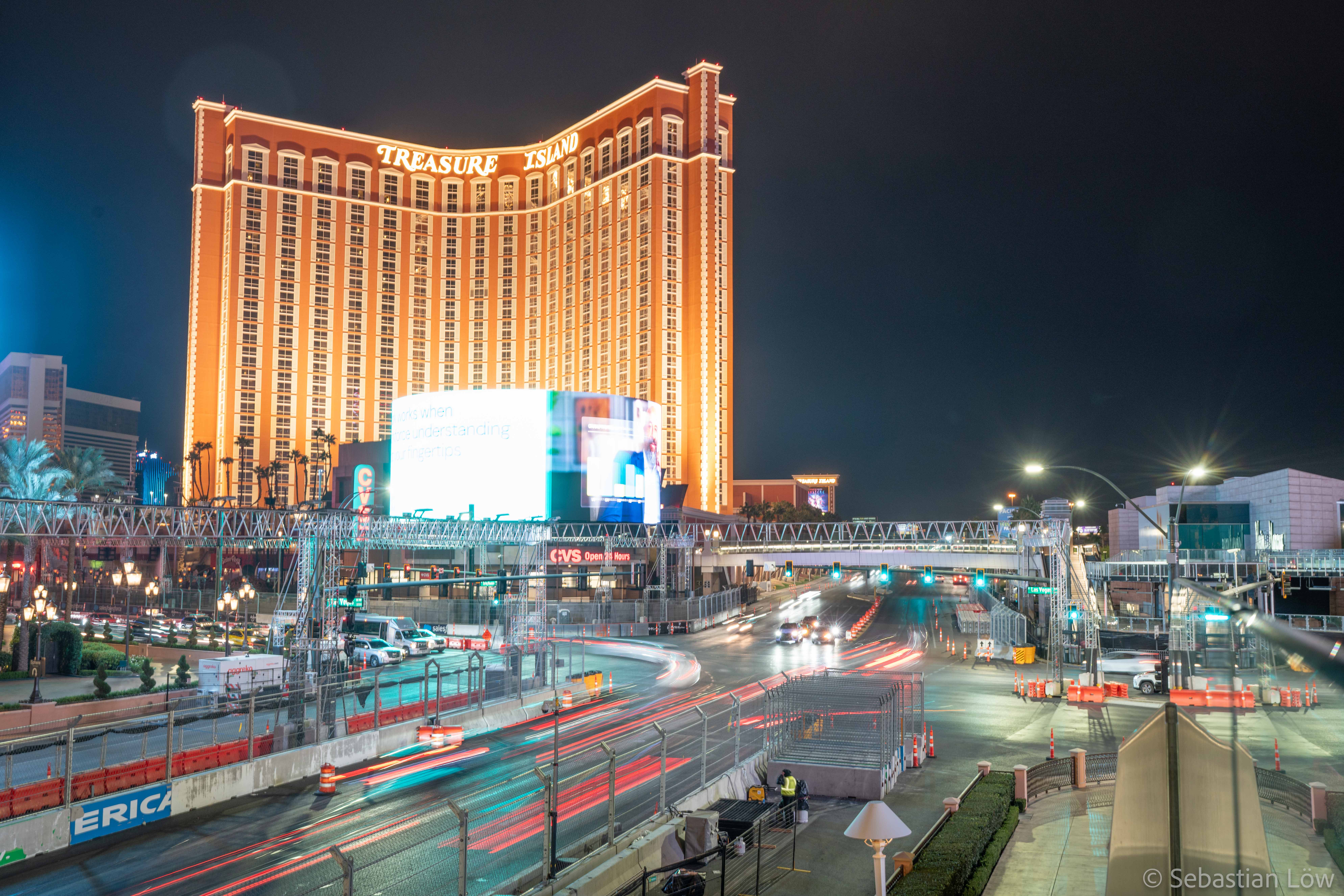We arrived at the motel and parked our bikes in the rooms. We could see the sphere from our window! All craziness aside, it is quite the impressive building. We decided to go out for dinner and took the monorail into the center of craziness. We stepped right into Paris, Eiffel Tower and Arc de Triomphe in front of us. Little fun fact: That was the second fake Eiffel Tower I saw and I have never seen the real one! We watched a few fountain shows in front of the Bellagio Casino and slowly made our way back to our motel. We learned pretty fast that the casinos were so accessible that you’d inevitably needed to walk through one to get to where you wanna go. Two weeks later, the Formula 1 Grand Prix would take place and everything seemed to be slightly more chaotic than usual, with sidewalks closed and concrete barriers already in place.